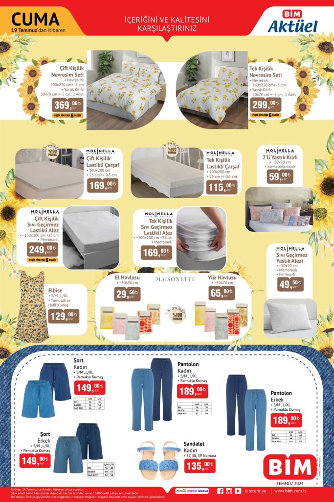 Giyim ve aksesuar kategorisinde ise kadın ve erkek şortlar, pantolonlar, havlular ve sandaletler de BİM’in 19 Temmuz aktüel ürünlerinde yer alıyor.